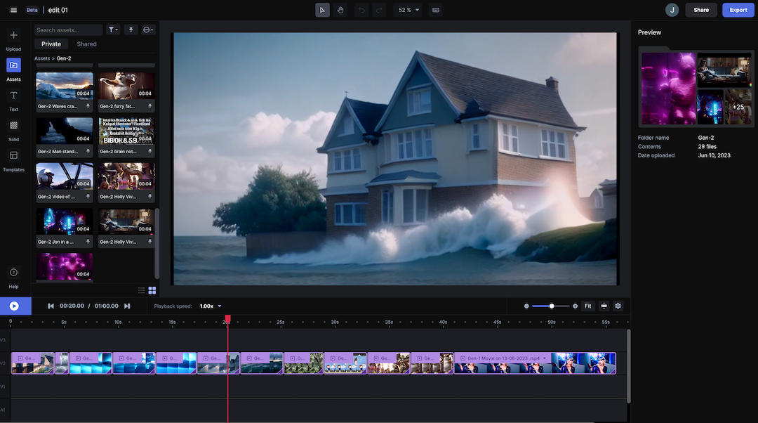 کتابخانه هوشمند محتوای تولیدشده با هوش مصنوعی: این اپلیکیشن دسترسی به کتابخانه وسیعی از کلیپ ها، افکت ها، موسیقی و المانهای گرافیکی تولیدشده با هوش مصنوعی را فراهم میکند که با توجه به محتوای ویدیوی کاربر پیشنهاد میشوند.
