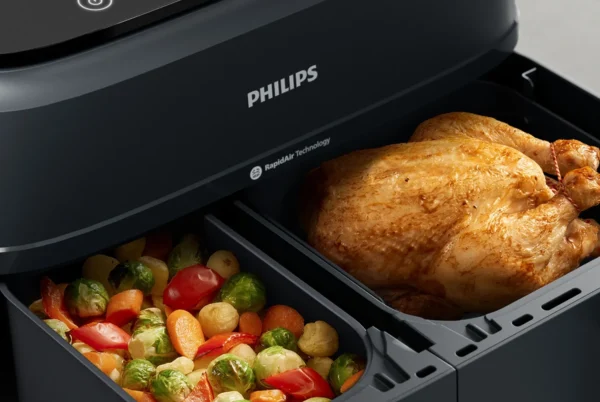 فیلیپس یکی از شناختهشدهترین برندهای سرخکن کممصرف در ایران است. مدلهای هواپز این برند با فناوری گردش هوای داغ Rapid Air، امکان پخت غذا با حداقل روغن را فراهم میکنند. برای خانوادههای پرمشغله، سرعت پخت بالای این دستگاهها و یکنواختی پخت غذا بسیار کاربردی است. فیلیپس مدلهای دیجیتال و مکانیکی دارد که مدلهای دیجیتال با برنامههای پخت از پیشتنظیمشده تجربه کاربری سادهتری ارائه میدهند. ظرفیت دستگاهها از ۲ تا ۴.۵ لیتر متغیر است که برای خانوادههای کوچک تا بزرگ مناسب است. علاوه بر این، طراحی ارگونومیک سبد و قطعات قابل شستوشو، نظافت را راحت میکند و نیاز به مراقبت مداوم را کاهش میدهد. دوام بالا، خدمات پس از فروش گسترده و دسترسی آسان به قطعات یدکی باعث شده فیلیپس به انتخابی امن، پرطرفدار و کاربردی برای خانوادههای ایرانی تبدیل شود. این برند ترکیب مناسبی از کیفیت، سرعت و سهولت استفاده را ارائه میدهد که برای سبک زندگی پرمشغله اهمیت زیادی دارد.