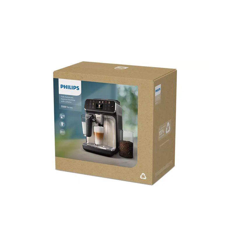 با اسپرسوساز فیلیپس مدل EP5547/90، میتوانید تمامی تنظیمات مورد نظر خود را مطابق سلیقه خود اعمال کنید؛ از میزان قهوه گرفته تا دمای آب و حجم اسپرسو. مخزن بزرگ آب، مخزن قهوه با ظرفیت مناسب و آسیاب سرامیکی با دوام بالا، همه کمک میکنند تا تجربهای حرفهای و بینقص از تهیه قهوه داشته باشید.