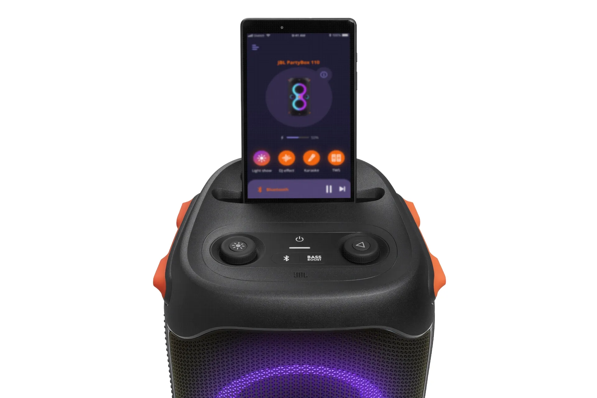 امکان تنظیم اکولایزر، تغییر الگوی نور، و مدیریت ورودیها از راه دور باعث شده PartyBox 110 یکی از مدرنترین اسپیکرهای JBL باشد.